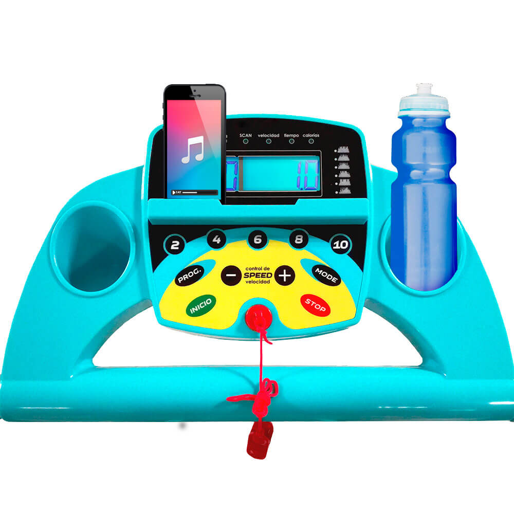 CARACTERÍSTICAS ESPECIALES 12 programas, 4 velocidades, Sistema de frenado de emergencia, cinta especial antideslizante, soporte para botella, soporte multidispositivo móvil y tablet, ruedas frontales para mejor transporte