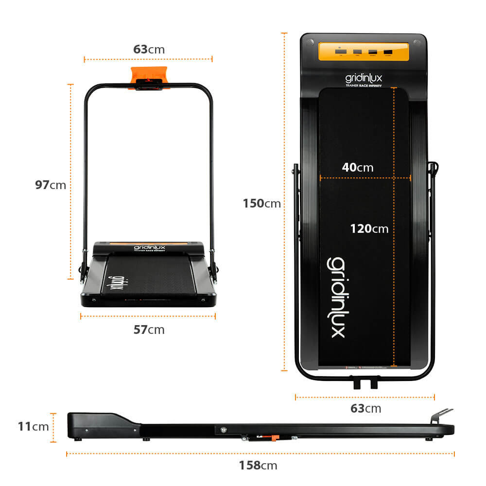 Trainer Race INFINITY es la cinta eléctrica de Alto Rendimiento ideal para mantenerte en forma y continuar tus entrenamientos corriendo o andando sin tener que salir de tu casa. Cuenta con un manillar plegable y tecnología Bluetooth. Podrás sincronizar la Pulsera Smart que incorpora, y así ajustar los parámetros de tu entrenamiento desde tu muñeca.