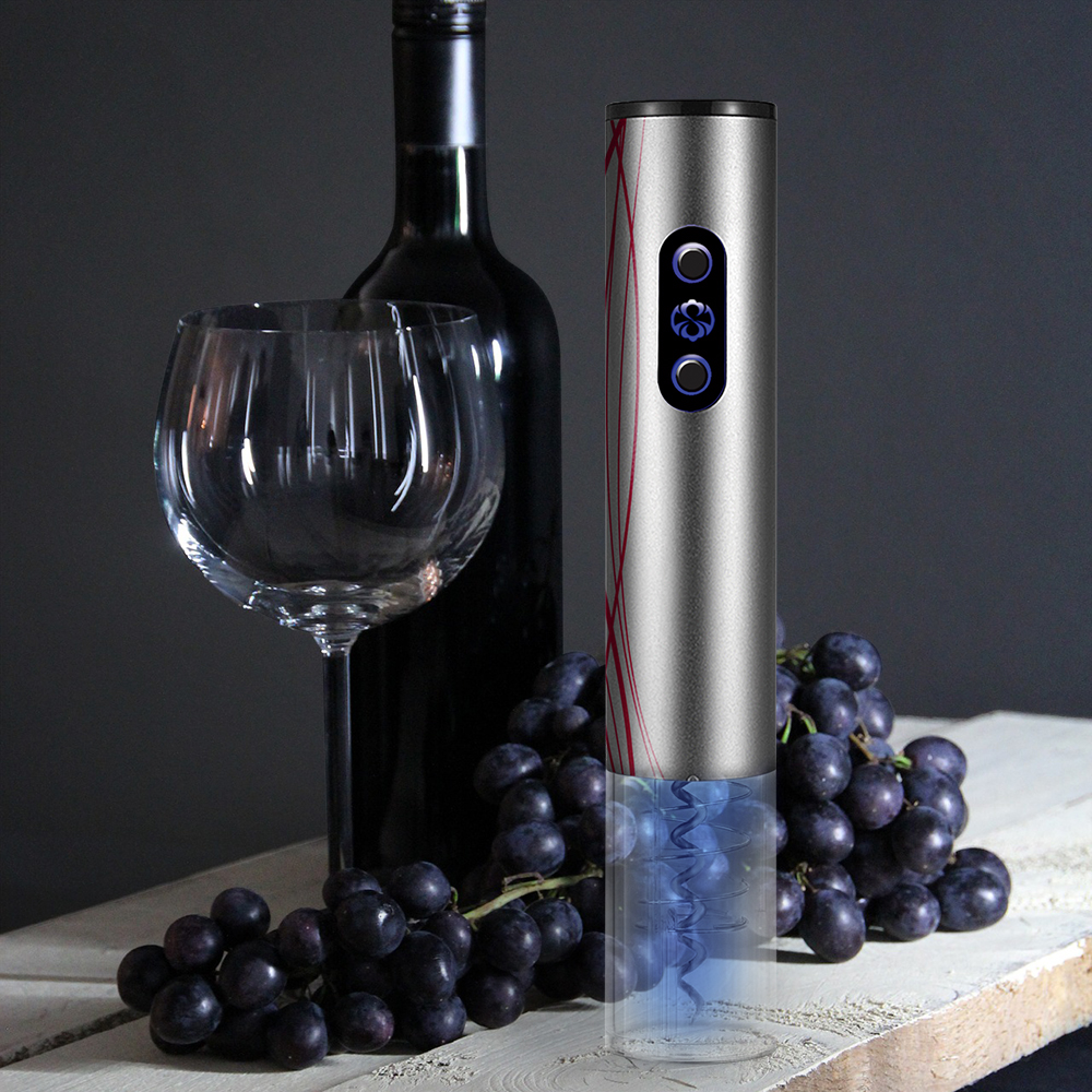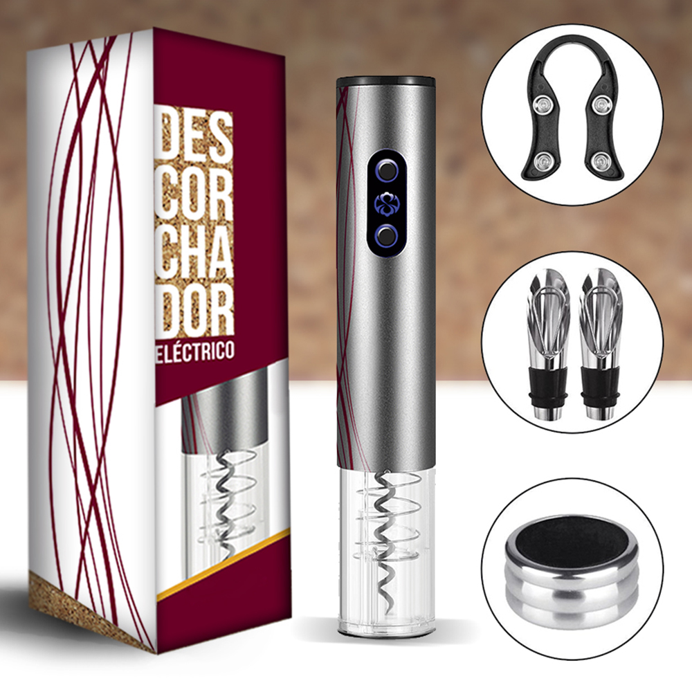 Conviértete en un gran sumiller. Ahorra tiempo y queda fenomenal delante de tus invitados usando el elegante descorchador eléctrico SILVER-LUX.