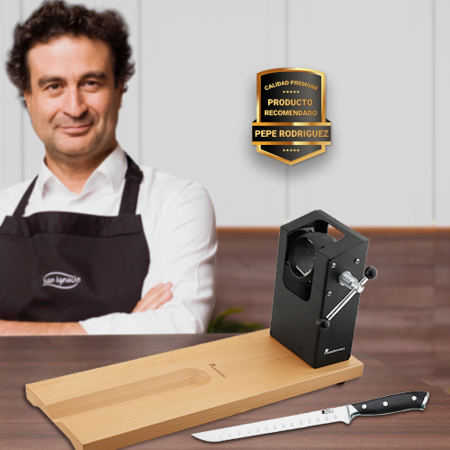Por fin he encontrado el Jamonero con el que soñaba desde hace mucho tiempo. Acostumbrado a los baratos, que apenas duran lo que uno quisiera, me decidí por éste, en el que con su sistema de rótula la pieza de jamón se manipula de una manera excepcional. Fabricado con un material sólido, sin ninguna complicación para su montaje y desmontaje y teniendo al Gran Chef Pepe Rodríguez como su embajador, me veo obligado a calificarlo con un Sobresaliente. Ah!!! y menudo cuchillo jamonero viene dentro de la caja: bueno, bueno de verdad. Mis felicitaciones a su fabricante.