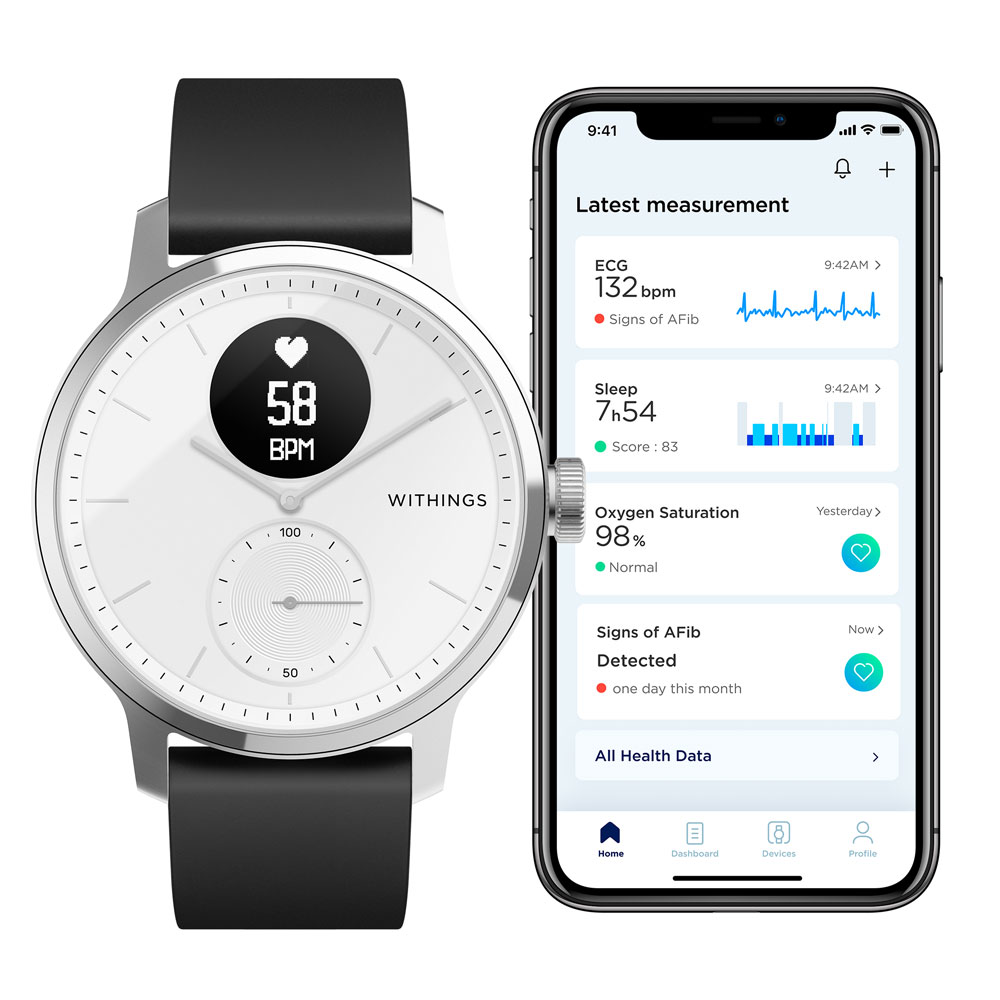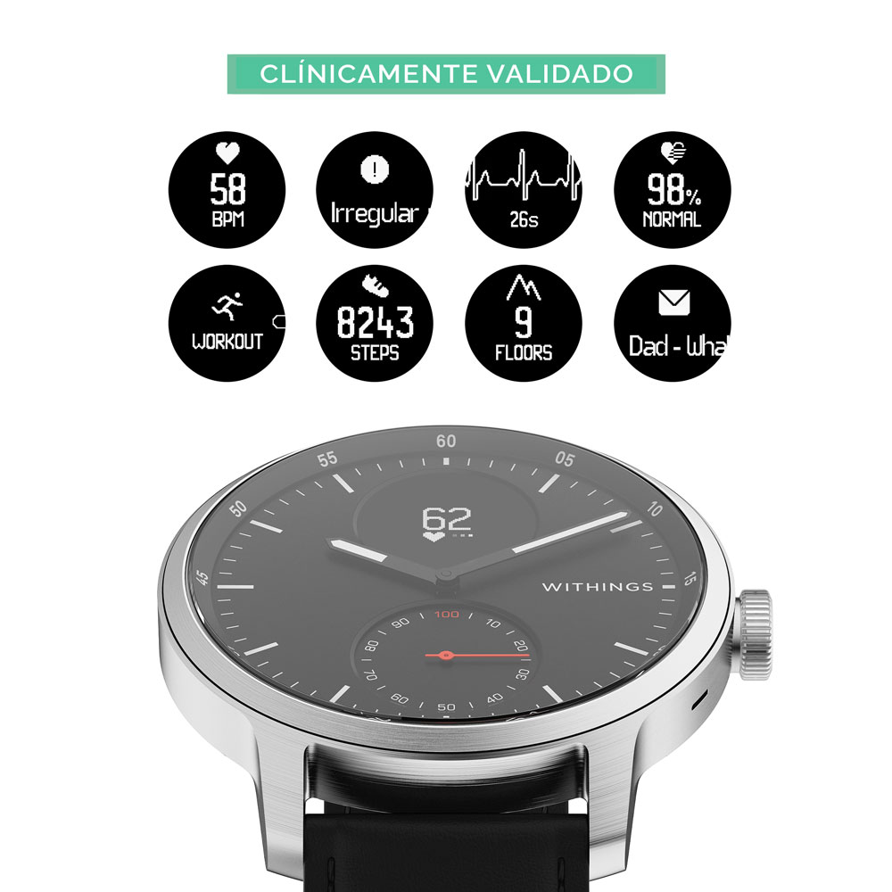 ScanWatch es el primer reloj inteligente híbrido que explora continuamente tus constantes vitales para detectar afecciones cardíacas y ayudar a mejorar la condición física general.